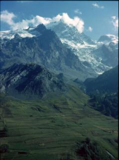 gegenüber der Meije. Knapp unter dem Ort Les Terrasses, hoch über La Grave
