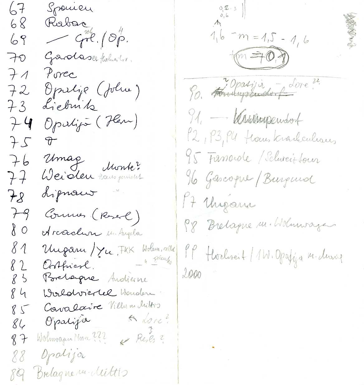 Brigitte Reisen 1967 bis . . . (Zettel)
