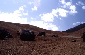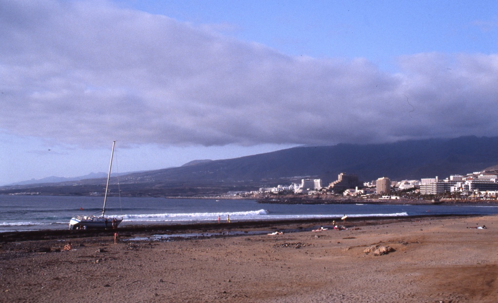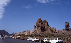 (11.-15.9.) Deck, Kiel und Kimmplatten schleifen und streichen. – Verkaufsführung im "Beverly Hills Club" für einen Anteil in einem Time-Sharing-Complex – bringt uns ein Mietauto für 3 Tage! Rundfahrten auf der Insel; zur Caldera am Fuße des Pico dei Teide; Lift gesperrt wegend zu starken Windes, Anstieg zu Fuss, aber nicht bis zum Gipfel.