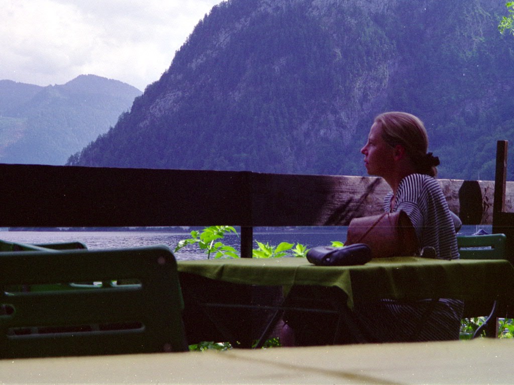 (18. Di) Heute morgen gut ausgeschlafen und unternehmungslustig. - Abstecher ins Salzkammergut, Fuschlsee, Wolfgangsee, Mondsee, Attersee. Mittagessen in Nussdorf am Attersee; dann zurück auf die Autobahn. Später noch eine Kaffeepause auf einem Autobahnparklplatz (mit anschliessender Verdunklung des Mobils). Gegen 2000 in Baden; alles ausladen, Mutter bereitet den Abendimbiss (dh. sie holt etwas aus dem Gefrierfach, das Brigitte dann zubereitet); später noch Teppiche auflegen.