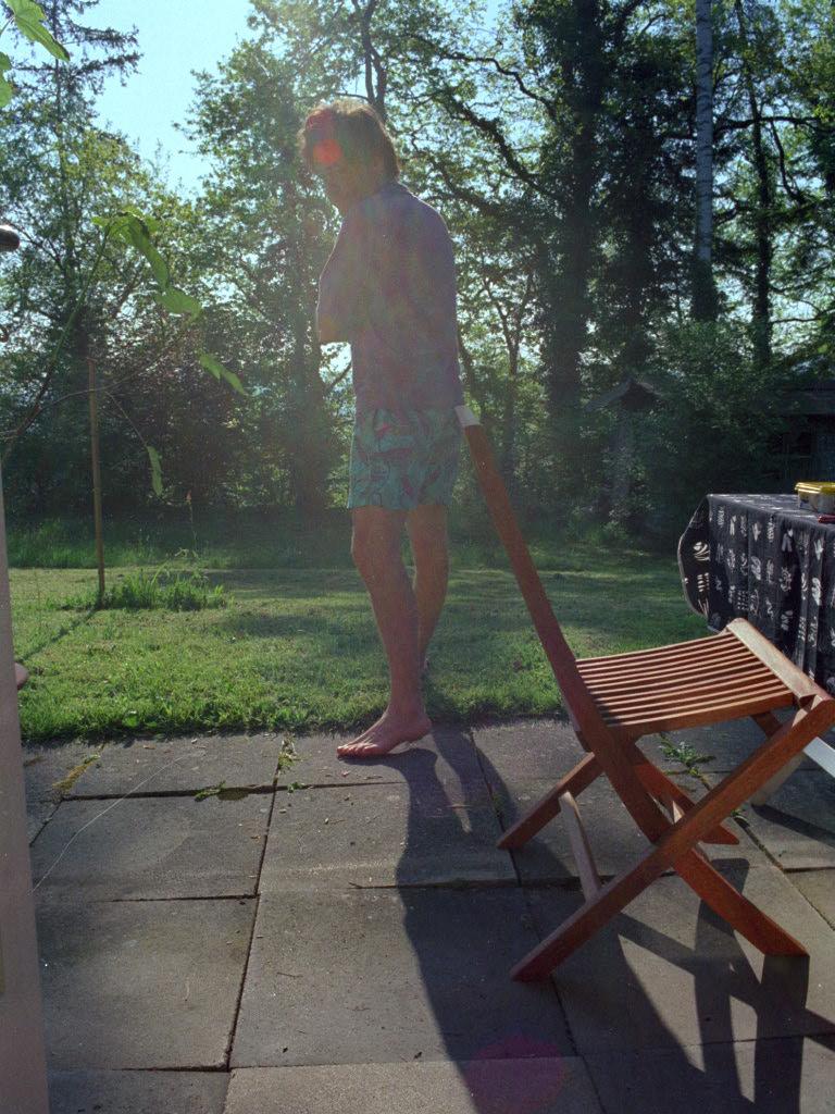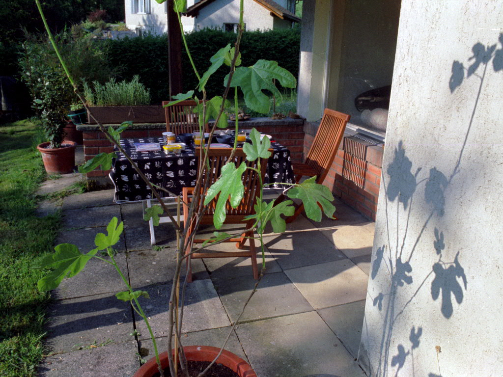 (14. Fr) Esis Büro; Hr. Fink (Personalverantwortlicher bei Sligoss/Ikoss). Nachmittags rumknotzen im Wohnmobil. Hans und Mara haben seit 3 Wochen 2 dreimonatige Katzen, Stella und Pupa (dämliche Namen) und benehmen sich mit den Viehchern ..... Vom zeremoniellem Bodensitzen bis zu halbstündigen Essensvorbereitungen, vom Umräumen des Wohnzimmers bis zum Schliessen sämtlicher Türen und Fenster dreht sich alles um die Katzen. - Hansens Onkel Peter ist auch da und baut an Treppenabgang und Keller. - Abends Imbiss mit Salat auf der Terasse.