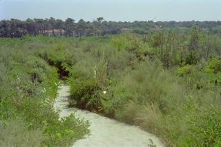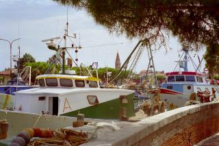 Wir machen einen Ausflug in Richtung Nordosten. Nach Eraclea Mare, - wir über-queren die Piave auf einer Pontonbrücke (1300 Lire Maut). Am Beginn des Ortes, am Ende einer Stichstraße ein kleiner Yachthafen, daneben natürliche Lagunenlandschaft.