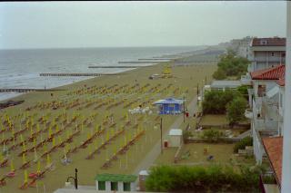 Sehr gepflegte Gegend, sehr flach, sehr grün, schöne Häuser mit Blumengärten. Wir wenden uns nach Lido di Jesolo. Wir parken, schauen uns um, kurz an den Strand, und nehmen die erste sich bietende Herberge. Ein Einsternhotel, Pensione San Carlo. Ein Zimmer, 80'000 mit Frühstück ist frei. Sehr klein, nicht schön, aber wir haben wieder einen Ausgangspunkt - und Schlafplatz.