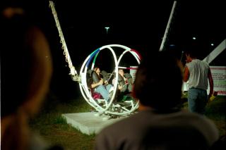 Kugelkäfig für zwei Personen, der mit zwei elastischen Seilen 40 m oder mehr in die Luft geschleudert wird.