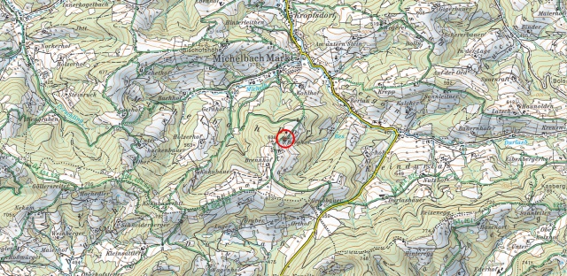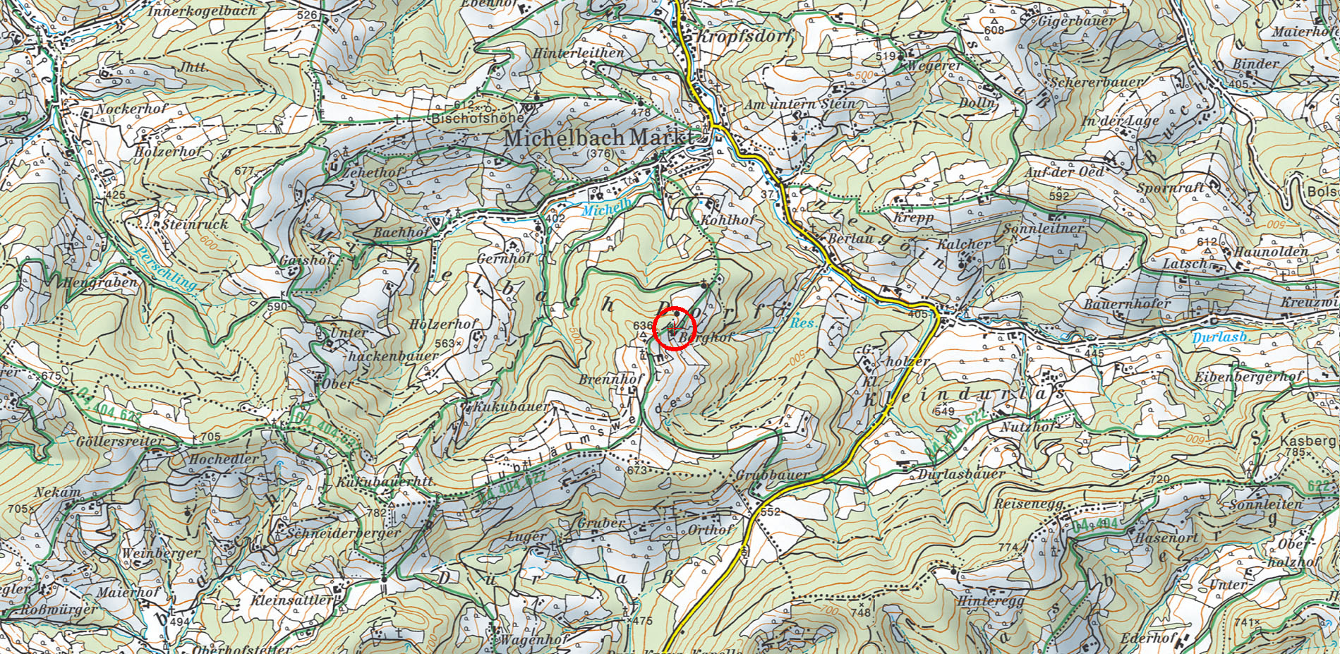 Von 2001 bis 2010 mieten wir im Sommer, von Mai bis September den "Berghof", einen 400 Jahre alten Bauernhof auf 600 m Höhe, in Michelbach (zwischen Böheimkirchen und Hainfeld). Dieser Hof liegt in unmittelbarer Nähe der Niederösterreichischen Volkssternwarte. Koordinaten 48°05'18'' Nord, 15°45'32'' Ost (in Dezimal-Notierung: 48.08832 Nord, 15.75902 Ost).