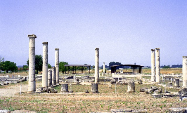 Wie wir hier in Griechenland unsere Reise weiter gestalten wollen, haben wir eigentlich nicht genau festgelegt. Wir zweigen von unserer Hauptstrecke – E 75 – nach Westen Richtung Edessa ab und kommen nach Pella, der Geburtsstadt Alexander des Großen. Hier wurde er von Aristoteles erzogen, hier verbrachte Euripides seine letzten Lebensjahre. Hier habe ich vor 42 Jahren in Gedanken den Knaben Alexander seinen Bukephalos zähmen gesehen. Pella wurde um 400 v. Ch. gegründet und blieb bis 168 Hauptstadt von Makedonien. Dann ernannten die Römer Thessaloniki zur Metropole.