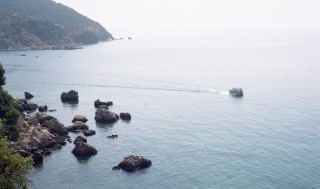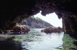 Die Gelsen haben wir ziemlich vertrieben oder vernichtet, aber nicht ganz. Heute habe ich einen Stich am Augenlid – ich werde von Tag zu Tag schöner! Das heutige Extra - hartgekochte Eier – kommt als Dessert, weil wir zu zeitig frühstücken und der Boy die Reihenfolge nicht ganz hinbekommt. Wir beschließen, unseren Aufenthalt weiter zu verlängern. Das geht maximal noch bis Donnerstag, dann ist das Haus bereits ausgebucht. Der Hotelbesitzer hat für heute einen Ausflug organisiert. Hinauf in die Berge, dann ein kurzer steiler Abstieg zu Höhlen – in die man nur schwimmend hinein kann. Ich lehne dankend ab. Ich bekomme trotz Affenhitze eine Gänsehaut, wenn ich nur an dieses Abenteuer denke. Hermann (bestens ausgerüstet) und ein franz. Ehepaar mit einem ca. 10-jährigen Buben (schlecht ausgerüstet) nehmen teil. Es geht die Sage, dass in dieser „Höhle der Thetis“ Achilles geboren worden sei.