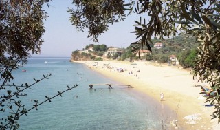 Durch massiven Gifteinsatz weniger zerstochen. Diese Biester verstecken sich tagsüber im Kasten und unter dem Bett. - Um 6:15 Uhr machen wir uns auf eine kurze Wanderung Richtung Kastri. Wir gehen bis zu einem Berggipfel von dem aus man im Osten Skiathos sehen kann. Um 8:15 sind wir wieder zurück zum Frühstück. Heutiges Extra Schafkäse mit Tomate. Die Pfirsichmarmelade, die man uns serviert ist wunderbar. Ich werde einige Gläser davon kaufen.