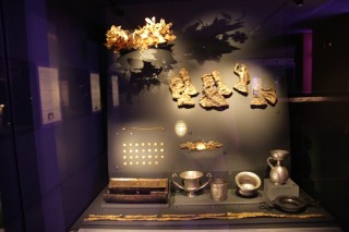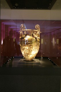 Wir begeben uns nach Aigai (heute Vergina) der ursprünglichen Metropole von Makedonien – später wurde sie zur Nekropole und Kultstätte, da Pella als neue Hauptstadt galt. Hier entdeckte man 1977 einen Grabhügel (110 m im Durchmesser und 20 m hoch) mit Königsgräbern, vermutlich auch das Philipp II (Vater von Alexander). Unglaubliche Gold- und Silberschätze, Bestattungsbetten, furniert mit Gold und Elfenbein („Chryselephantine“), Schmuck, Amphoren, Tonminiaturen von Gottheiten und Gegenstände des alltäglichen Gebrauchs - Grabbeigaben.