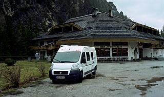 Abfahrt von Lind so gegen 0800. Weiter durchs Murtal. Der Straßenverlauf ist manchmal verwirrend, weniger eindeutig als es auf der Karte erscheint. Der Katschberg zB. (über den wir wollen) ist nie angeschrieben, erst am Fuß der Passtraße in St. Michael. Die Landschaft des Murtals gefällt uns sehr gut, es gibt schöne "Gegend" und schöne Häuser und Gehöfte. Die Katschbergstraße ist sehr steil (15%) - möchte sie nicht im Winter rauf- oder runterfahren. Auf der Passhöhe ist es absolut scheußlich! Offenbar hat man sich jahrelang bemüht die Gegend zuzubauen und zu verschandeln. - Um ca. 1015 sind wir in Spittal an der Drau. Dahinter Würstel und Bier in einem Landgasthof (der auch Autobusse abfertigt), sehr nett, sehr geräumig und auch ein anständiger Raum für die Raucher. - Weiter nach Lienz (auch sehr nett) und weiter durch das Pustatal nach Italien. Das Pustatal, Sillian and Toblach (I) sind nicht mehr so schön. Mittag in einem Berggasthof "Tre Cime" (Drei Zinnen) bei einer kleinen, alten, sehr resoluten Dame. Die Griesnockerlsuppe ist sehr gut. Das andere verdorben und ungeniesbar. Schmuggeln das Essen in Plastiksackerln hinaus um es später zu entsorgen. Die Dame des Hauses kriegt davon was mit und fragt, "Hams's draußen a Hunterl?" - Ab Cortina d'Ampezzo giest es in Strömen. Über Piave di Cadore und Belluno verlassen wir die Alpen. Ab Belluno halten wir uns Richting Feltre (Westen), fahren aber vorher ab Richtung S und Castelfranco di Veneto. Die Straße ist wieder einma weit unklarer als die Karte. Unsere 2. Übernachtung auf einem Parkplatz neben der Strada Statale - trotz der Bundesstraße daneben ein recht ruhiger Platz. 639 km seit Baden.