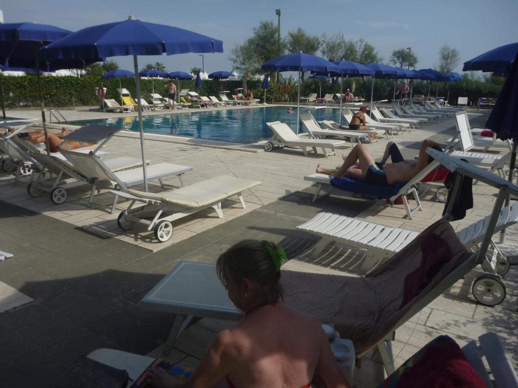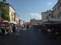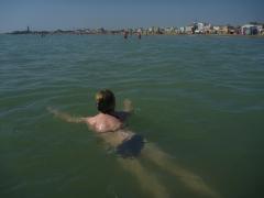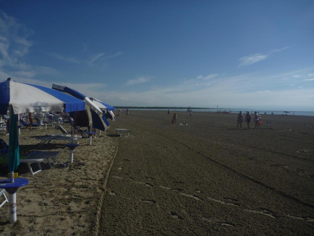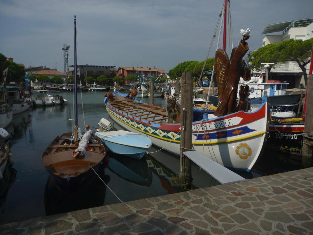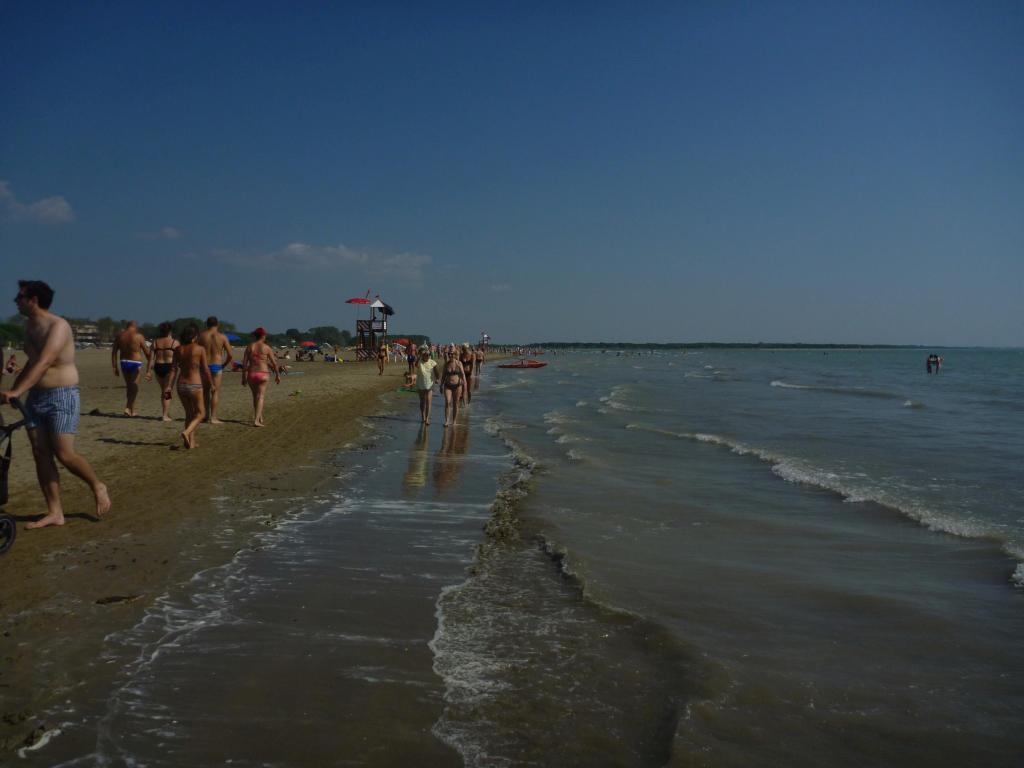 Wir machen eine Woche Badeurlaub in Caorle. - Brigitte noch am Morgen mit Katharina in der Frauengasse - Katharinas Beginn im Gymnasium. Anreise über Leoben und Neumarkter Sattel (die Strecke, die wir der Grazer vorziehen; sie ist um 25 km kürzer, aber verläuft nicht durchgehend auf Autobahnen). Sind nach rund 520 km gegen 17 Uhr in Caorle. Es wäre besser gewesen, nicht schon bei Portogruaro sonder erst bei der nächsten Ausfahrt (Santo Stino di Livenza) die Autobahn zu verlassen. Der Ort ist stärker gebucht als gedacht. Wir müssen uns durch fünf Hotels durchfragen, bis wir ein Zimmer kriegen - Hotel Fantinello (->). An den ersten beiden Tagen gibt es Regen und Wind, aber dann ist es immer schön, warm, aber nicht zu heiß. Im Hotel gibt es ein reichliches Frühstücksbuffet. Den Mittagsimbiss nehmen wir meist in einer kleinen Strandtratteria vis a vis vom Hotel, abends gehen wir eher nur auf einen Umtrunk; manchmal nehmen wir auch einen Imbiss am Zimmer. Insgesamt haben wir besonders am Anfang der Woche auffällig wenig Hunger. Unser Hotel liegt am Oststrand (Spaggia di Levante). Der ist wirklich sehr breit und nicht überlaufen. An seinem östliche Ende kommt man zu einem Kanal, der aus der Lagune von Caorle herausführt, dahinter liegt eine unbebaute (Halb-) Insel. Es ist wirklichen eine schöne, erstaunlich naturbelassene Gegend. - Was Caorle besonders attraktiv macht ist das Stadtzentrum mit Fußgängerzone und dem Hafen. Es herrscht ein unglaublicher Betrieb. Westösterreich hat noch Schulferien und es sind auch sehr viele Familien mit kleinen Kindern da. Ein Autotuningclub hat ein Treffen; die Dinger sind originell - man müsste sie wohl als "Brüllautos" bezeichnen so dröhnen ihre Motoren. Es ist jedenfalls nett und lebendig - nichts wäre öder als ein verlassener Touristenort. Das Meer ist angenehm warm und das Wasser sauber. Wir schauen uns auch die Campingplätze am Ostende des Strandes an. Campeggio Falconera (->) wirkt zwar ein bischen schmuddelig, aber der Platz ist mit Pappeln bestanden und liegt direkt am Strand; es gibt hier recht hübsche Bungalows. Camping in Italien am Meer ist nicht billig. Ein Stellplatz und zwei Erwachsene kommen in der teuersten Saison auf so ca. 45 eur. Bungalows kosten in der Hauptsaison von 80 € (ohne Veranda, für 2 Personen, in der 2.Reihe) bis 150 € (3 Schlafzimmer, 2 Bäder für bis zu 7 Personen) plus(!) 11 € pro Person; Prospekt(PDF) (->). Die Preise in Italien sind eigentlich eine Frechheit. Der davor (westlich) liegende Campingplatz Laguna Village (->) hat zwar einen eleganteren Eingangsbereich, ist aber deutlich weiter vom Meer entfernt (bzw. es gibt nur wenige an den Strand grenzende Plätze). Preise sind etwa gleich wie im Falconera. Allem Anschein nach haben diese beiden Campingplätze nur bis 18. September geöffnet. Unser Hotel liegt etwas weit vom Zentrum, aber es gibt Räder zum Ausborgen. Überhaupt herrscht hier ein regelrechter Radel-Hype; soviel Hotel- und auch private Räder - es ist unglaublich. - Am Montag den 12. ist es dann soweit. Wir stehen etwas früher auf und treten durch das morgentlich kühle Meerwasser, duschen, Frühstück, Auto beladen, usw. Rückfahrt über dieselbe Strecke; Rast wieder überm Wörthersee (Ausblick gut, Essen schlecht) und in St. Marein. Autobahnmaut insgesamt ~27.