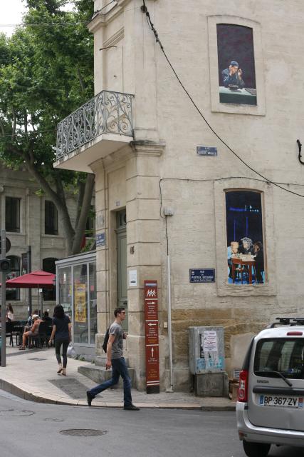 (18., Sa.10.6.) Ausflug nach ARLES. Markt (großer Markt! Schöne Stoffe, 'endloser' Ausziehtisch und vieles andere), Altstadt, antikes Theater, Cafe de la Nuit (DAS Cafe von Vincent van Gogh) - Mittagessen dort. Heiß, 32° auf der Rückfahrt, am CP ab 17h angenehm; ins Piscine und ins Meer (Meer sowas von kalt!); Wäsche waschen, haushalten und so.