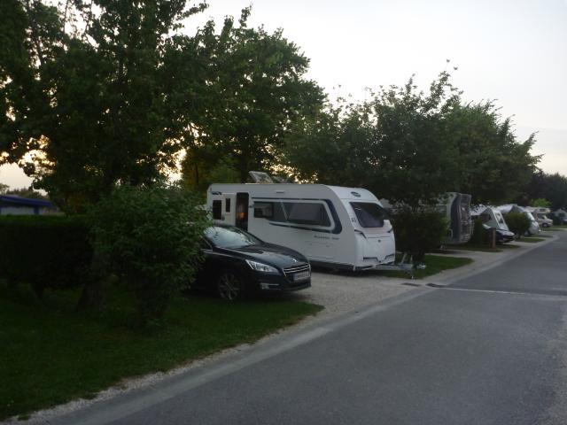 (21., Di.13.6.) Von St. Maries nach Neydens (10 km vor Genf; 420 km gefahren). Heißer Tag, bis 32°, die Fahrerei ist aber gut gelaufen. Das "Ausparken" war ein totales Fiasko; das Rangieren ohne 'Mover' ist etwas, das ich absolut nicht beherrsche. Man hatte weder nach links noch nach rechts genug Platz zum Ausholen. In die Bucht hatten wir ihn manuell gestellt, aber raus ging das nicht, weil es geringfügig bergauf ging. Im Nachhinein betrachtet, hätte man den WW mit dem Auto auf den Weg raufziehen können, da der vis-a-vis Platz frei war, nochmals abhängen und den Wagen manuell drehen. In der Hektik des Aufbruchs bin ich nicht darauf gekommen, habe B. fest angeblafft und dann haben den Wagen viele Helferlein rausgezogen und umgedreht; ich koche noch Stunden später vor Wut wegen meines Ungeschicks.