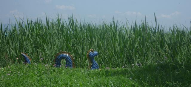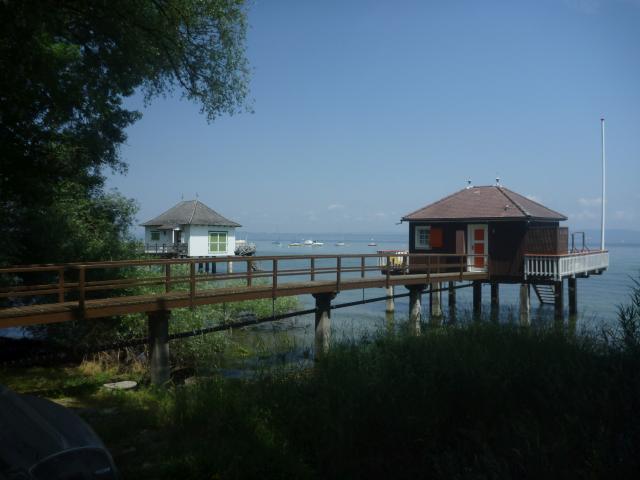 (3. Tag, Fr.26.) Haben in Helfrieds Gästewohnung geschlafen. Kommen gegen 11 los. Und dann rasseln wir voll rein! Gestern hat uns das Navi aus einem 1-Stunden Stau raus gehalten. Heute manövriert es uns in einen zweieinviertel Stunden Stau hinein. Es lotst uns über Konstanz und dort steht alles. Es ist echt grauenhaft und ich werde halb wahnsinning von der Steherei in der Hitze. Irgendwann können wir an einem Kreisverkehr umdrehen, zurückfahren und dem ganzen entkommen. Wir hätten uns von Anfang an Richtung Frauenfeld halten sollen und dort auf die Autobahn auffahren. - Danach läufts ganz gut, aber um 5 hab ich genug. Wir machen Halt in Orb; das ist SW von Yverdon und das ist am W-Ende des Neuenburger Sees (Lac de Neuchatel), noch 96 km vor unserem Tagesziel Neydens (F). - Das Einparken auf dem engen Campingplatz ist auch ziemlich horrormäßig, ohne die Hilfe eines Campers, der hilft, den WW händisch umzudrehen, wäre gar nichts gegangen. Aber irgendwann stehen wir und Ruhe kehrt ein. Es war ein anstrengender Tag.