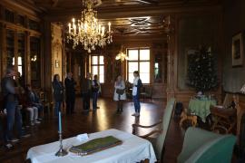 (Fr.31.5.) Ausflug nach Schloss Eckartsau. Gehörte mal dem Mann von Maria Theresia, dann Erzherzog Franz Ferdinand und war der Ort an dem Kaiser Karl I seinen Rücktritt von den Regierungsgeschäften unterzeichnete und von wo aus er in die Schweiz reiste. Ein schönes Schloss in dem noch viel von der alten Einrichtun erhalten ist, eine außergewöhnlich gute Führung und ein toller, wirklich super toller Park. Gutes Mittagessen in einem herben Gasthaus in Stopfenreuth, "Zum Auhirschen".