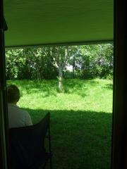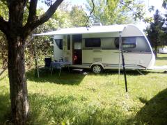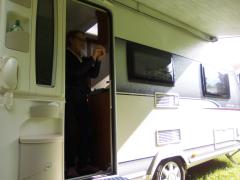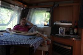 (Do.30.5.) Wohnwagen waschen, Radträger abmontieren, beladen. Ist doch mehr Arbeit und länger als gedacht. Abfahrt 13h. Fahren über Oberwaltersdorf, Trumau, Schwadorf, Fischamend. In Trumau Mittagessen; in dem Restaurant residiert eine Firmungsgesellschaft, sehr ordentlich aufgehübscht, dabei sehr ruhig; wie heute üblich müssen die Leut rausgehen zum Rauchen. Bewölkt, regnerisch, der Wetterbericht hat am Nachmittag Auflockerung versprochen. Tatsächlich regnets immer mehr bis die Regenschauer in einen Dauerregen übergehen. Ist jetzt nicht so super, aber man hat ja Hoffnung auf Besserung. Um Vier sind wir in Petronell. Da ist der einzige Campingplatz für die ganze Gegend. Die nächsten sind in Wien, am Neusiedler See oder in Poysdorf (schon nahe der CZ Genze). Österreich ist jetzt nicht sooo das Campingland (außer Neusiedler See oder Kärnten). Vor dem CP mehrere Schweizer Safarifahrzeuge - die sind robust, die Leute, stehen im Nieselregen als ob nix wäre. Ich bin nicht so robust und versuch zwischen den Regentropfen durchzuhüpfen. Telefonier die CP Tante. Ja, wir dürfen uns hinstellen, sie käme gleich. - Die ist auch robust, unterhält sich mit den Leuten im Regen stehend ... merken die nicht, dass da Wasser von oben kommt? Ist jedenfalls sehr freundlich, füllt unseren Schein aus; 7,50 + 7,50 + 9 + 3 gibt 27. Ist jetzt nicht super billig für einen Platz, wo man nicht mal das Chemie-WC ausleeren kann. Das WLAN gibt's auch nur auf dem Papier. Die "Facilities" sind von der Tennishalle, sind eh OK, der Platz ist sehr grün und schön. Muss in der Hochsaison eher überlaufen sein. - Nachbarn eine ältere Frau mit einem behinderten jungen Mann (Mutter, Oma?), kleiner, neuer Hobby mit rotem VW Bus aus Bruck an der Mur (der mit Caravan- und Radfahrparaphernalien vollgestopft ist), Eriba Touring (gepfeilter Bug, Hubdach) wie alle mit reichlich Radfahrausrüstung, etc. Der Platz ist besucht aber nicht überfüllt. - Am Abend noch ein "Tash" in den Ort, is auch nicht so weit. Ganz schön kühl, Heizung auf drei; alle Fenster zu geht nicht, da wird es schnell stickig; in der Nacht lassen wir das Küchenfenster offen, das gibt dann ausreichend Frischluft und lässt nicht zuviel von der Wärme raus. Unter dem rechten Bett kommt zuwenig von der gewärmten Umluft an, da wird's zur Außenwand hin kalt; muss noch schauen. Jedenfalls - wenn draußen graußlich ist, ist's drinnen sehr schön und gemütlich.