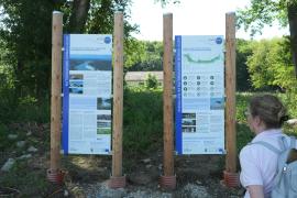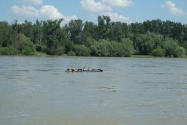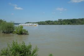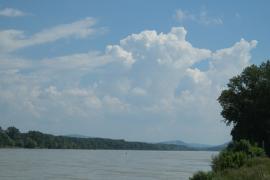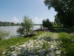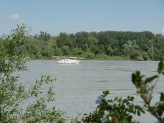 (So.2.6.) Donau. Morgens nach Wildungsmauer. Das ist von Petronell 5 km stromaufwärts. Dort gibt es einen echt guten Greißler, der auch noch am Sonntag offen hat; wir haben nämlich vergessen Brot zu kaufen; der Laden ist sehr gut bestückt und heutzutage schon einen Sehenswürdigkeit. Danach an die Donau; marschieren den Trepplweg entlang. Man sieht, dass er vor kurzer Zeit noch überflutet war. Hatte schon vergessen wie mächtig und schnell fließenden der Strom ist. Ausflugsschiffe gesehen, einen Frachtkahn, einen Schnellkatamaran (möglichweiße Budapest - Wien), Motorboote, Paddelboote und einen schweizer Segler mit gelegtem Mast (vielleicht am Weg ins Schwarze Meer) - mein top-Tag dieser Mini-Reise. Danach noch nach Hainburg; essen in einem ungarisch geführten Gasthaus an der Donaulände, werden von Regen und Gewitter überrasch, von Sonnenschirm nur mäßig beschützt, am Weg zurück zum Auto noch Kaffee und Kuchen, fußwund zum Auto, da die nun nassen Flip-Flops plötzlich fürchterlich drücken und entspannt auf den nun fast völlig leeren :-) :-) :-) Campingplatz.