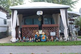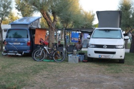 *) Begehrlichkeiten: 1. ganz nahe an den Duschen; weil, ein echter Camper geht nicht zu Fuss; wenn Facilities doch weiter, dann mindestens Radl; die ganz bequemen fahren mit dem Auto Geschirr abwaschen (schon gesehen!). 2.) Vorne am Strand, beinhart um jeden Preis, wenn kein Platz, dann trotzdem, wenn absolut kein Platz, dann trotzdem!