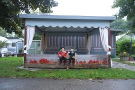 Abfahrt 10h. Über Semmering und den Neumarkter Sattel. Raststätte Wr. Neustadt Reifendruck des WW prüfen. In St. Marein Zwischenstopp mit Würstel und Bier. Es sollte zuerst über den Obdacher Sattel gehen, aber in Zeltweg war ein Flugtag, daher sind wir dort nicht abgefahren. Ein erster Stopp in Kärnten war von Anfang geplant, wußten aber nicht so recht wo. Mit elf und zwölf war ich in Sommerlagern am Turnersee, daher die Idee dort zu übernachten. Der See ist schön, der CP Breznik sehr voll mit Dauercampern, gute Sanitäranlagen, es gibt einen ACSI Tarif. Das Wetter ist allerdings trüb; zuerst nieselt's, dann regnet's ein bissl und dann dauerhaft.