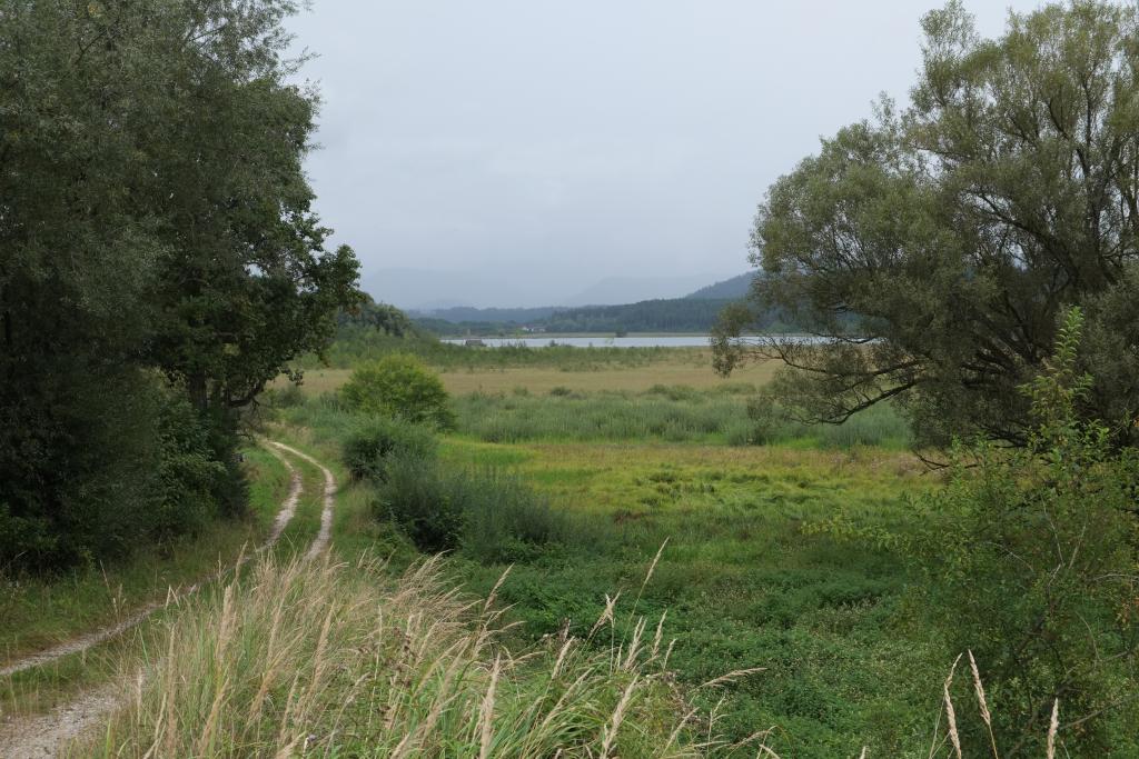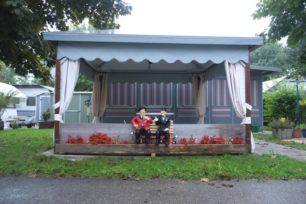 Es schüttet. Sind nicht so recht entschlossen, ob wir fahren sollen oder den Tag lesend im Bett verbringen. Gegen 10 hört's zu regnen auf - das fühlt sich nach Fahren an; aber jetzt zusammenpacken heißt Hektik - das fühlt sich nach Bleiben an. ... - Mittag an den Klopeiner See. Puhh ist der Ort "schiach"! So a la spanischer Touristen Ort. Finden mit Mühe einen Essplatz, leer und ungemütlich; das Essen ist allerdings gut. - Zurück am CP mache ich mich zu Fuss auf, den Ort des Sommerlagers zu besuchen. 3 km auf der anderen Seite des Sees, Karl Hönck Heim. Alles privat. Ist immer noch etwas, wo Veranstaltungen abgehalten werden.