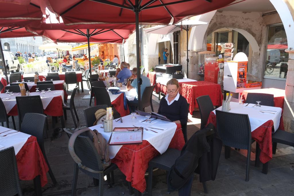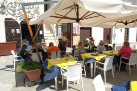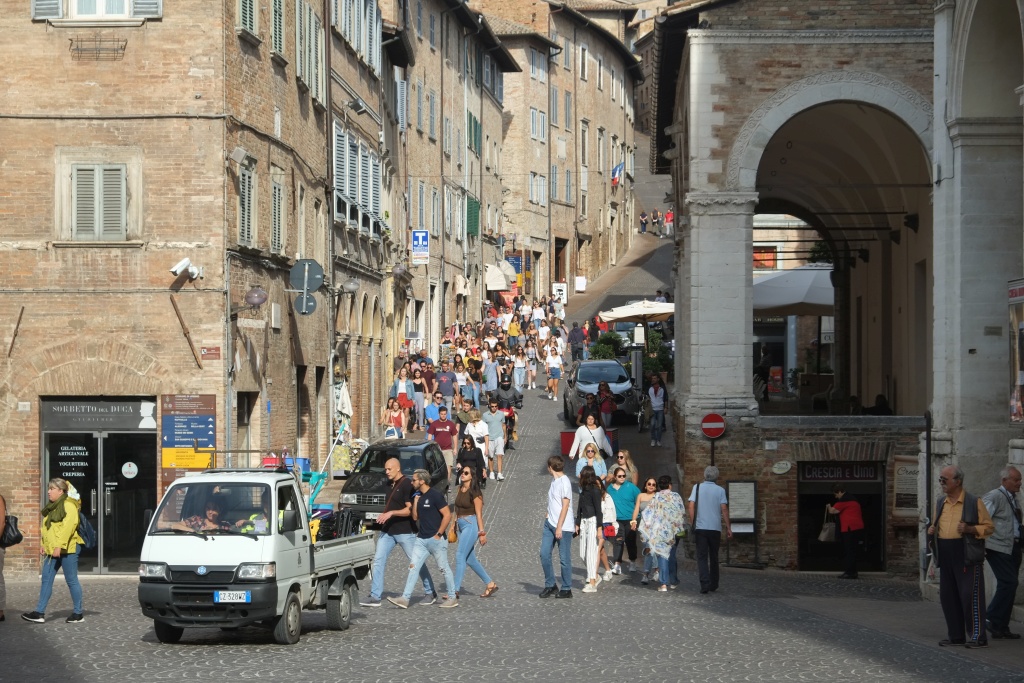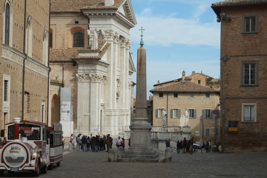 Besichtigung von Urbino. Urbino ist ein Wahsinn. Bitte Wikipedia schauen, das kann man nicht mit wenigen Worten schildern. Schönes (wenn auch nicht besonders gutes) Essen in einer Trattoria. Zweimal Kaffee und Bier. Rundfahrt mit Tschu-Tschu Zug. Saliere, descendere, sal..... - die Urbinesi müssen besonders geübte Bergsteiger sein, nachdem was man in der Stadt rauf und runter steigt.