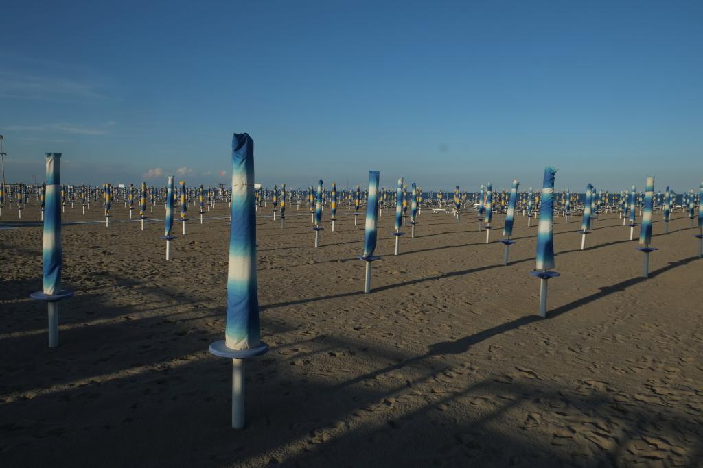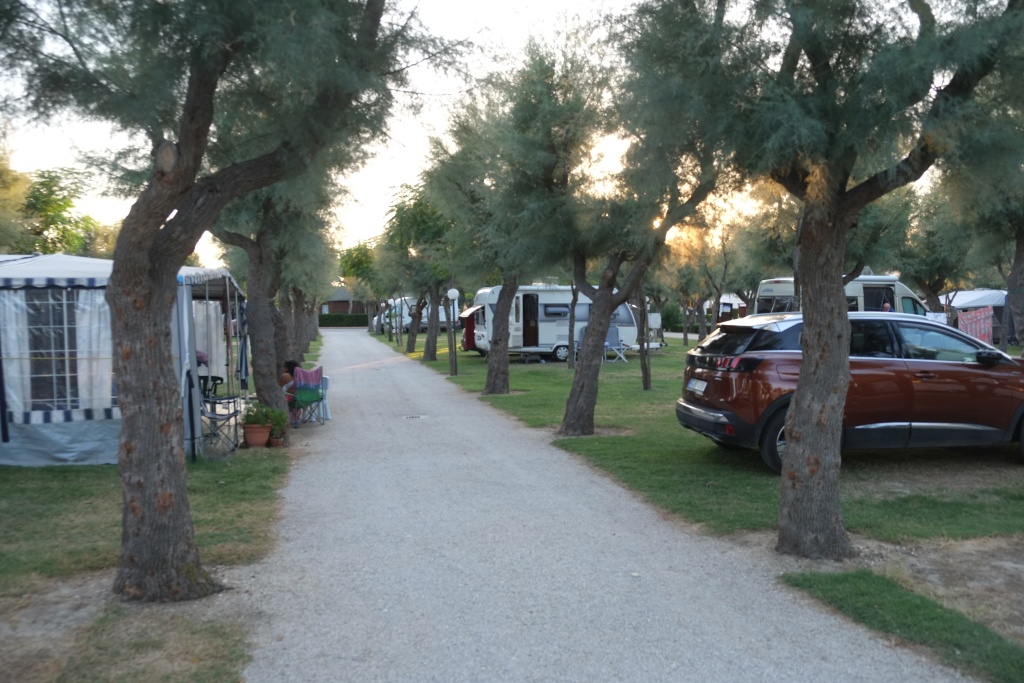 Urbino - Lido di Jesolo, CP Dei Dogi. Abfahrt um 10. Nach besagtem Frühstück. Ausparken nicht so kompliziert wie einparken. Ca. 350 km nach Jesolo. Erst zurück nach Pesaro an der Küste, dann über die Autobahn, dann Strada Statale vorbei an Ravenna und Chioggia. Wir sind gespannt, ob die Aussage der Archie-App, dass dieser CP offen sei, stimmt. Stimmt! Bummsvoll va. mit Wohnmobilen. Vorher großes Mittagessen in einem Resti am Weg. Sehr voll mit sehr vielen Italienern. Das Essen mehr reichlich als gut. Reichlich? Reichlich! Sehr reichlich! Rülps, gurgel, sehr, sehr reichlich! - WW aufstellen. Spaziergang an den Strand. Is ja toll, dass man überhaupt hin kann. Alles verbaut, alles eingekastelt, schiach, schiach! Neben dem CP ein Wohnmobil Stellplatz. Unbeschreiblich! Auf unserem CP sehr wenig Duschen und Klos für viele Plätze. Im Sommer soll hier alles ausgebucht sein. Da kostet dann eine Übernachtung 35 oder mehr. Also, es ist unfassbar, wieviel Unbequemlichkeit und Scheußlichkeit sich so viel Leute (vor allem die mit Wohnmobilen) für sehr, sehr viel Geld kaufen. Wir haben es in der Vergangenheit schon recht schön an der oberen Adria gehabt, zwei Mal in Caorle und einmal in Jesolo - aber das, was wir heuer in Chioggia und Jesolo gesehen haben, ist einfach indiskutabel.