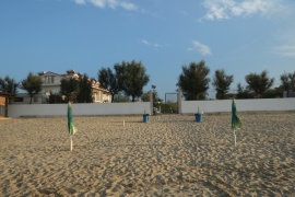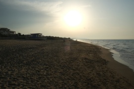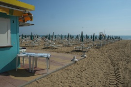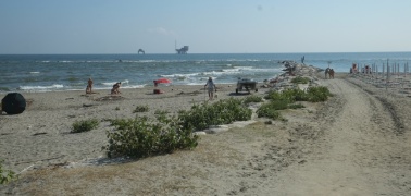 Lido di Dante, Ravenna. Nachem ich es mir diesmal genau überlegt habe, wie man Ravenna besichtigen müsste, fahren wir an den Strand. Besser so, da kann ich micht nicht so leicht in der Stadt verfahren. Der Strand sieht eigentlich scheußlich aus, aber! Wenn man einmal akzeptiert hat, was einen in Italien erwartet, und wenn man dann neben den eingekastelten Schirmorgien einen öffentliche Strand findet, und zwar einen großen, weitläufigen, der eigentlich ziemlich sauber ist, auf dem es Dünen gibt, und Treibholz, einen schattigen Platz unter einer Art Schilf und keinen, der einen abkassieren will, dann dämmert einem so langsam, dass das das Beste ist, was einem hier jemals wiederfahren wird - also, wenn man seine Erwartungen entsprechen angepasst hat, dann ist der Lido di Dante ein Super-Strand! - Mittagsimbiss in Strandbeisl auch gut.