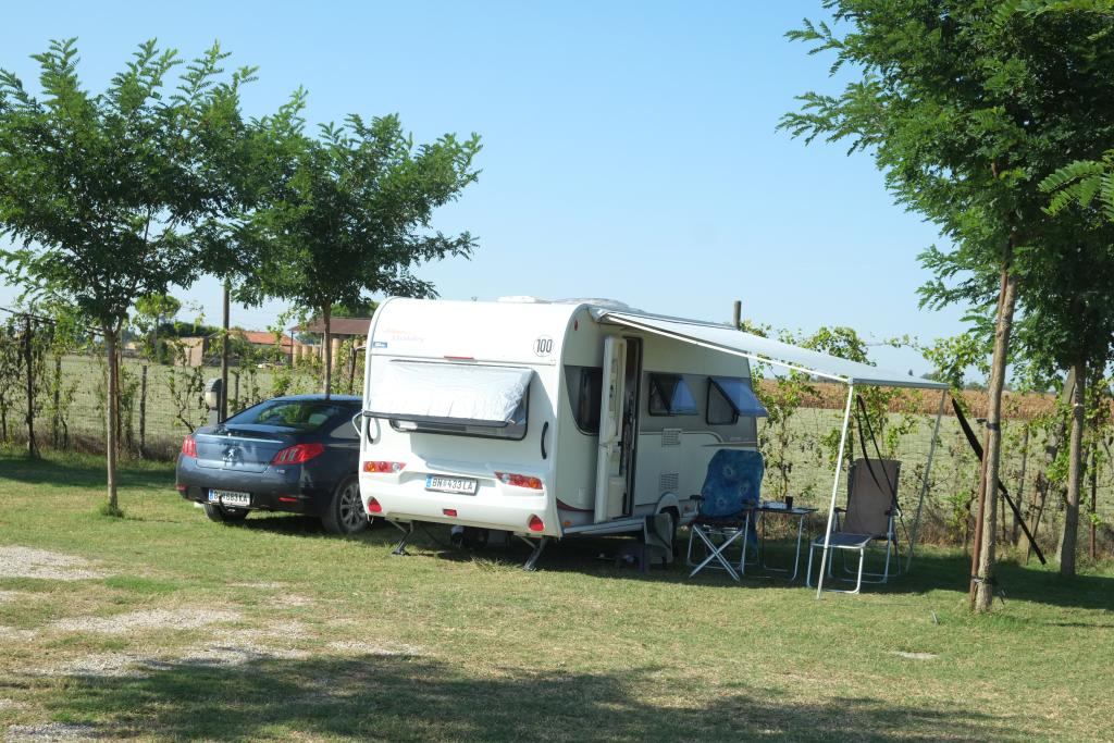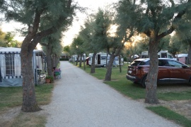 Chioggia - Ravenna, Camping Agri Bio Classe. Über die Strada Statale nach Süden; ist nur 100 km. Ganz schön viel Verkehr, auch viele Lastwagen. Der CP 5 km südlich von Ravenna läuft unter "Agritourismo", das ist sowas wie Urlaub auf dem Bauernhof. Der Platzt ist nicht am Meer, aber sehr ruhig zwischen Feldern und ideal, um Ravenna zu besichtigen. Nachdem wir uns etabliert haben, fahren wir in die Stadt, nur so, um uns ein bischen umzuschauen. Die einstige Hauptstadt des weströmischen Reiches ist weitläufiger und weniger zentral, als wir uns das vorgestellt haben. Es ist heiß und es wird eine mühselige und verwirrte Herumrennerei. Immerhin, ein paar von den Sights habe wir zufällig gefunden. Noch ein Kaffee und was Süße, dann zurück zum kochend heißen Auto. Am Rückweg in einen Supermarkt, dann trotzt Navi 2x verfahren, einmal davon verkehrt in eine Einbahnstraße ... jetzt wird's Zeit, dass der Tag zu Ende geht!