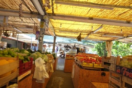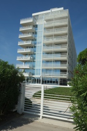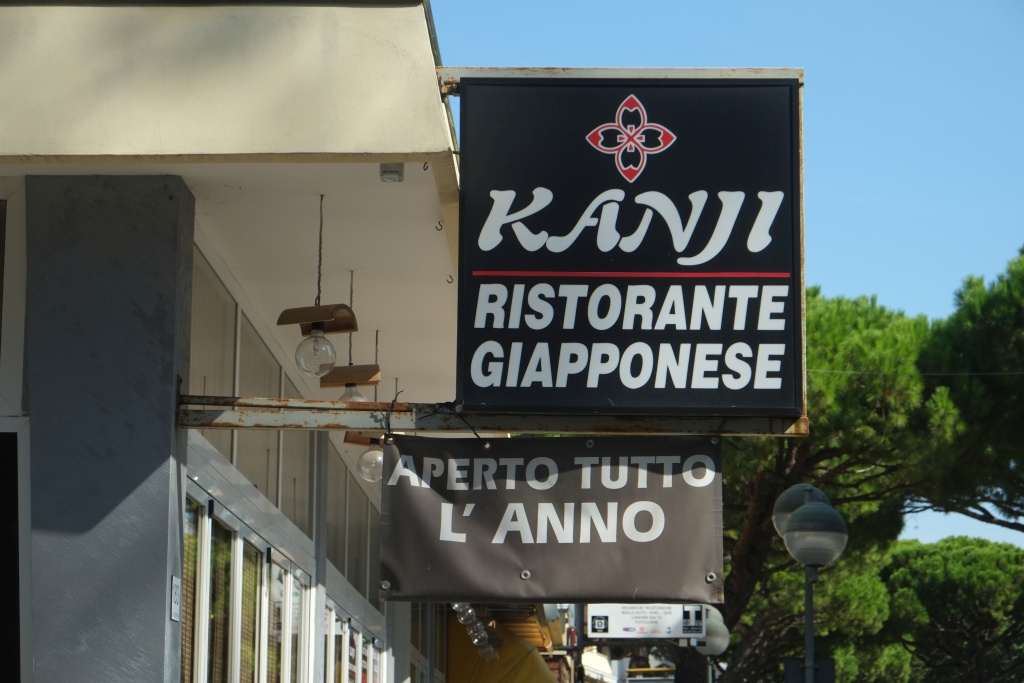 Jesolo. Zwei Touristen auf der Suche nach dem Zentrum. Zuerst mit dem Auto durch Lido di Jesolo - sehr ruhig ist höflich; die meisten Geschäfte sind zu; irgendwas zum Kaufen von Mitbringseln gibt's nicht. Dann nach Jesolo; gepflegter Ort, schöne Geschäfte, auch die Kaffees ansehnlich und ordentlich. Aber, auch sehr ruhig. Es gibt einen kleinen Gemüsemarkt. Nehmen einen Kaffee auf einem kleinen Platz mit Springbrunnen und Fußgängerzone. Zurück nach Lido. Durchgang zwischen Hotels zum Strand, ein bisschen auf und ab um die Piazza Milano. Parken in der Nähe des Hospedale (praktisch). Dort auch einen guten Essplatz gefunden, der von Eingeborenen frequentiert wird. Lasagne, Salat, Bier - gut, im Fernsehn Simpsons auf italienisch. (Das Bild vom freistehenden Moskito-Zelt nur weil's so originell ist.)