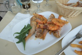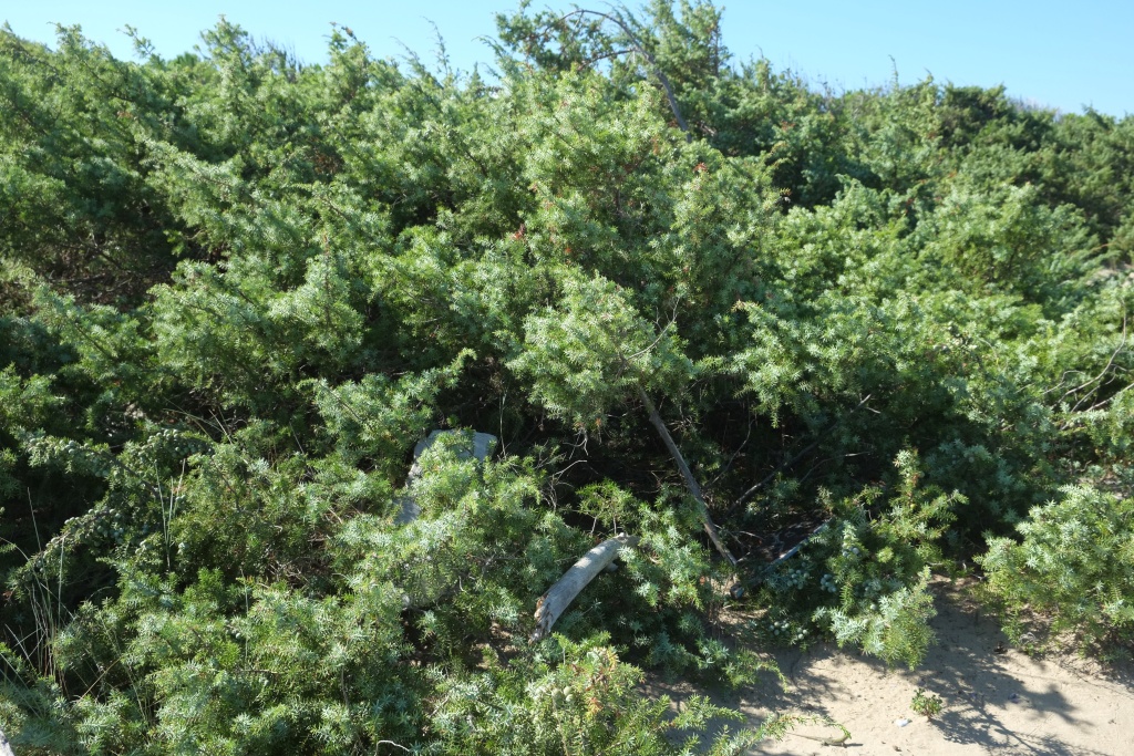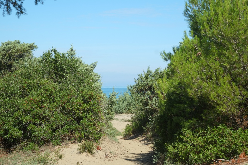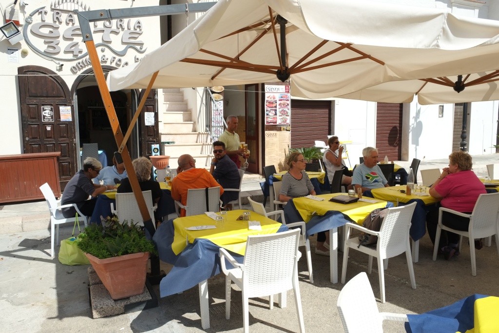 Ausflug in das Naturschutzgebiet zwischen Lago Varano und Meer. Sonne sehr heiß und intensiv; sosehr, dass wir nur ein paarmal den Waldstreifen durchqueren, aber uns nicht am Strand niederlassen (dort auch kein Schatten); einer der Zugänge zum Meer unfassbar zugemüllt. Da gibt es wirklich kranke Vollidioten, die ihren Müll dorthin führen und abladen (obwohl es überall Mülltrenncontainer gibt). Weiter nach Torre de Mileto; Touristenort, ebenfalls leer, aber gepflegter als Foce Varano. Draußen bei den Tremiti Inseln viele, viele weiße "Stecken". Glaube zuerst es könnte eine Segelregatta sein, aber dazu sind es zuviele; nach fragen, es sind Bojen von sehr, sehr großen Netzen, die von sehr großen Fischerbooten ausgesetzt wurden. Mittagessen, italienisch, ich ein vollständiges Menü mit zwei Vorspeisen (ua. Miesmusscheln mit Polenta gefüllt), Fisch, Wein und Früchten, B. irgendwas mit Schwein, Salat, Tiramisu.