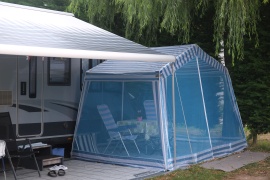 Kärnten - Chioggia. Auf die A2, die "übliche" Strecke über Villach, Tarvis, Gemona, Udine nach Süden. Nach Venedig ab auf eine Strada Statale. Unterwegs reichlich Baustellen und Gewitter; wirklich, richtig heftige Sturzregen; fahren einmal raus um das Ärgste abzwarten. Vor Chioggia überquert man die Lagune auf einem Damm; links und rechts Wasser, Schilf, Seevögel - sehr "venedisch". Camping Europa ist der CP, welcher der Brücke in die Altstadt am nächsten liegt. Bin entsetzt, wie häßlich der ist; und wie eng die Stellplätze. Der erste, den wir uns aussuchen liegt gleich neben den Toiletten (übersehen). Dann fahr'n wir mit dem Mover ein Stück weiter; wir kommen auch abgehängt kaum hinein, weil die Straße so schmal ist und der Platz von (jungen) Platanen begrenzt (man hätt's auch anders anglegen können, aber das fällt mir erst später auf). Die Duschen sind seltsam - Klo, Waschtisch, Dusche in einem; stellt sich mit der Zeit als gar nicht so unpraktisch heraus. Abends an den Strand. Na, den findet man kaum. Marathon durch Autoabstellplätze, Sportplätze, Strandhüttlen und eine unfassbare Menge von Schirmen, einHeer, eine Legion, 30 Legionen, Millionen von diesen Dingern - Erster Golderner Sch...haufen (natürlich "Scheiterhaufen" gemeint) für die Vernichtung von Landschaft! Wie schön muss das einmal gewesen sein! In der Nacht wieder ein sehr, sehr heftiges Gewitter; Donner, dass der Boden des Wohnwagens vibriert. Der Regen prasselt so heftig, das wir nicht sicher sind, ob es hagelt.
