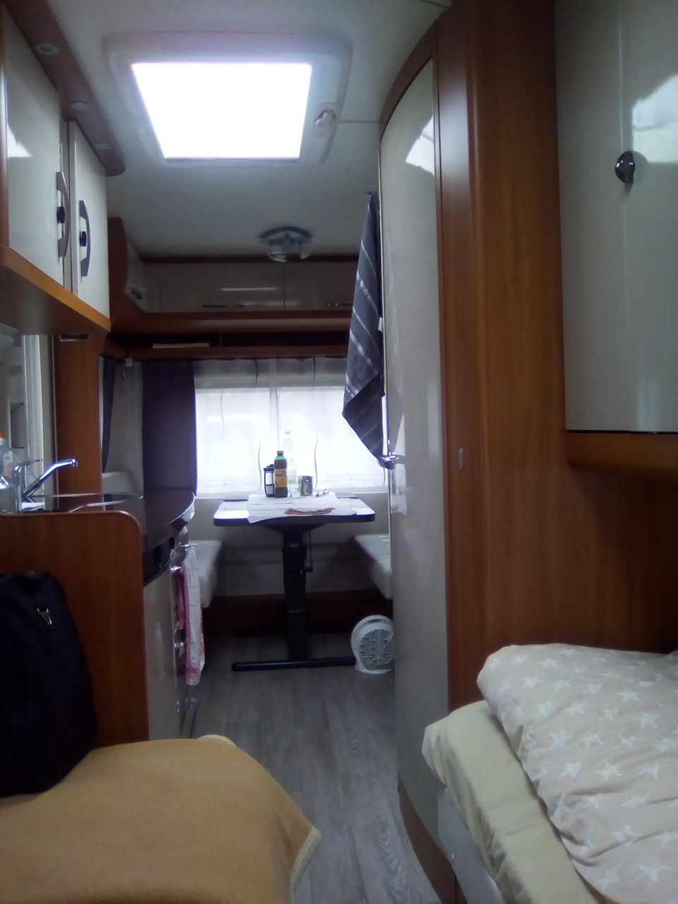 Es war klar, dass ein nicht zu alter gebrauchter günstiger kommen würde, als ein neuer (den es in den gesuchten Größen und gewünschten Farben ohnehin kaum mehr gibt). Anfangs ist die Vielfalt der Modelle unüberschaubar und erst so nach und nach findet man sich zurecht. Zuletzt standen der Eriba Nova Light 470 und der Hobby Ontour 460 HL in der Wunschliste zuoberst; von beiden ältere, schon ausgelaufene Modelle, da die neueren schon von den ungemütlichen Farben infiziert sind; der Hobby hat bis ca. 2017 warme Farben (der neuere 460 DL sieht aus, als ob er mit Granit-Grabsteinen ausgepflastert wäre).