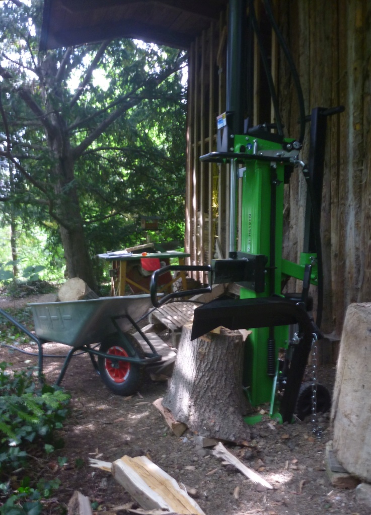 Na jedenfalls haben wir das Holz da gelassen. In Zukunft stehen noch mehr alte Bäume zum Weschneiden an (die Baumhaseln sind alle am Ende ihrer Lebenszeit). Ich bin jetzt nicht so der fleißige Holz und Gartenarbeits Typ und die Frage stellt sich, was den aus den dicken Meterstücken werden sollte. - Nicht ohne erhebliche Zweifel habe ich mich entschlossen, einen Holzspalter zu kaufen. Nebstbei bemerkt bei Krawany in Mödling angefragt und bestellt - motiviert durch das Bestreben österreichischen Firmen zu bevorzugen. Das Ding kostet knapp 800 Euronen; das sind die Brennholzkosten von 2 bis 5 Jahren . . . also die Wirtschaftlichkeit des Projekts ist ein bissl fraglich ;-).