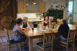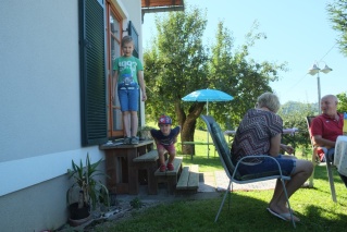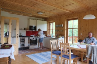 Postlgraben. DAs Bauernhaus von H. und G. ist wirklich sehr schön, ebenso der Grund, der Wald und auch der Schwimmteich. Was mir besonders aufgefallen ist: nachdem wir die ganze Nacht die Balkontür offen gelassen hatten und es in der Früh wirklich sehr, sehr frisch war - nach dem Schließen war's gleich wieder angenehm warm; und das obwohl nicht geheizt wurde. Das Haus ist luftig und gut 'beatmet'. Es zieht nicht, die Luft ist aber auch nicht eingesperrt; es hat wirklich ein ganz außergewöhnliches Wohnklima. Die Wohnküche ist groß, so geräumig und licht(!) ... man muss dort eigentlich nix tun, als rumsitzen, beim Fenster rausschau'n und auf das nächste Essen warten :-) :-) War vielleicht an den zwei Tagen besonders günstig - der Holzbau gut durchgewärmt, aber unter Tag nicht zu heiß.