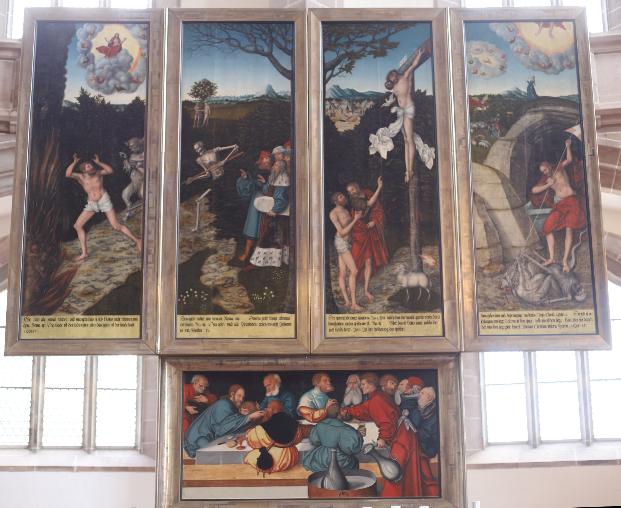 St. Wolfgang mit einer riesigen, modernen Orgel und einem Lukas Cranach Altar. Also, ich