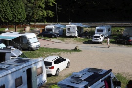Es ist wie immer, wenn man ein Wirtshaus sucht, findet man keins. Kurz vor Passau, unmittelbar vor einer großen Donaubrücke leitet uns das Navi nach Irring zum Dreiflüsse-Camping. Das liegt hoch über der Donau, von drei Flüssen merken wir nichts, aber es ist schön und am frühen Nachmittag noch leer. Mit 34€ wird es zwar das teuerste der Reise, sogar für 2 Kipferl und 2 Semmeln nimmt der alte, gierige Bayer mit den gefärbten roten Haaren (5€), mehr als alle anderer zuvor, aber es geht ja nur um einen Nacht. Statt bayrischem Wirtshaus gibt's Würsteln. - Im Laufe des Nachmittags kommen noch andere Übernachter und unweigerlich sind auch wieder die "Aufschließer", die "Ankuschler", die "Unter-deiner-Markise-Parker", die "In-deinem-Klo-Übernachter" dabei. Sie entdecken eine kleine Lücke zwischen dir und deinem Nachbarn und ratz-fatz quetschen sie sich rein. So groß kann der Campingplatz nicht sein, dass sie nicht nach der kleinesten Lücke schauen. Wiesen und Wälder erstrecken sich 200 Schritte weiter hangaufwärts aber sie wollen lieber auf deiner Stoßstange sitzen! Du kannst sie noch so böse anschau'n, sie glotzen zurück und haben keine Ahnung, was los ist.