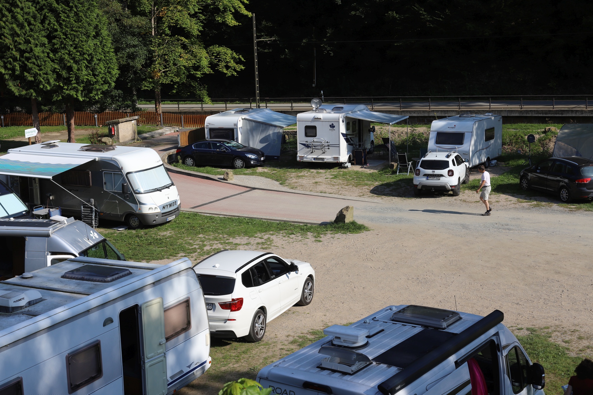 Schöner Spätsommer Sonntag. Alles unterwegs, was ein Motorrad, ein Wohngehäuse oder sonst einen fahrbaren Untersatz hat. Erster CP voll, zweiter (Ostraumühle) gerade noch einen Platz gekriegt und das auch nur weil wir schon zu Mittag da sind. Mit Mover mühsam reinquetschen, dann Essen und Bier, danach geht's wieder. - Platz zielsicher neben dem Wohnmobil-WC-Entleerplatz gewählt; dafür ist er eng, ein Bach plätschert unentwegt und hinter dem Bach verläuft die Ausflugsstraße. Das ist nicht nur nicht das Gelbe vom Ei, das ist nicht mal die Eierschale, eher so die Kacke vom Huhn. Das WLAN existiert auch nur auf dem Papier; es gibt gerade mal flackernde Zeichen von sich, damit man auf dem Platz herumirrt und nach einem stärkeren Signal sucht, das man doch nie findet. Kein WLAN wär' mehr.