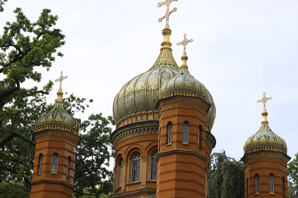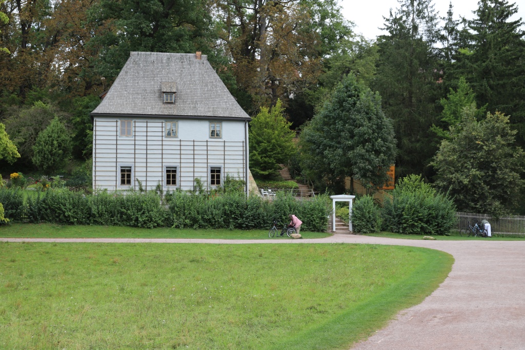 WEIMAR 3. Historischer Friedhof, Fürstengrab (dort liegt ua. G. und Karl August; hinten ist eine russ. orth. Kapelle angebaut). Durch den Park an der Ilm zu Goethes Gartenhaus (mit Blick zur Römischen Villa, die war sozusagen Karl Augusts Gartenhaus). Zur Stärkung ins Gasthaus zum Weißen Schwan, wo wir schon vorgestern waren, Thüringer Rostbrätle (heftig deftig reichlich gut).