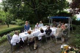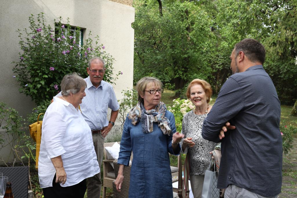 Hermann holt unsere Gäste vom Flughafen Wien Schwechat ab und chauffierte sie zu uns in die Mozartstraße, wo sie erst (weil Fliegerverspätung) so gegen 19:00 Uhr ankamen - doch ein bischen reisemüde, geschlaucht von einer fast unerträglicher Hitze (34,5°C), durstig, aber wohlgelaunt. Nach herzlicher Begrüßung und ausgedehnter Tratscherei haben wir uns zum Abendessen im Esszimmer versammelt.