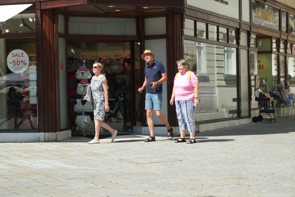 Wir bummelten durch die erleuchtete Straße, gesäumt links und rechts von Schanigärten und stoppten vor der Tribüne, wo eine Life-Band musizierte. Wir setzten uns zum Zuhören hin, Michael und Brigitte wurden vom Rhythmus eines Oldies angesteckt und ließen sich auf ein vergnügtes Tänzchen ein.