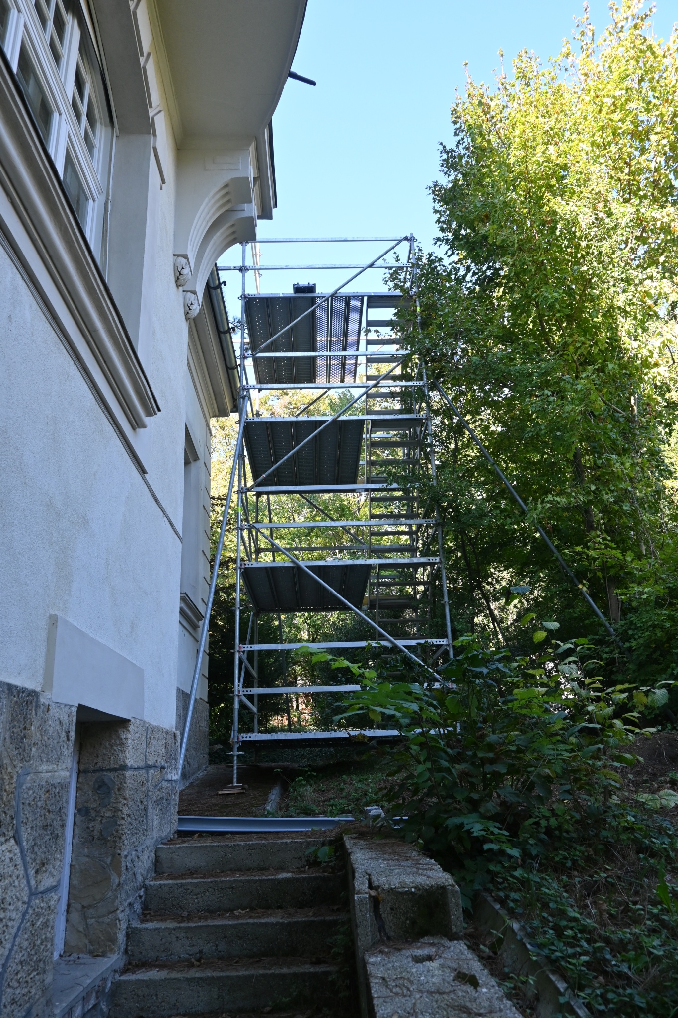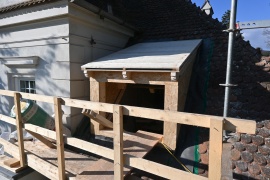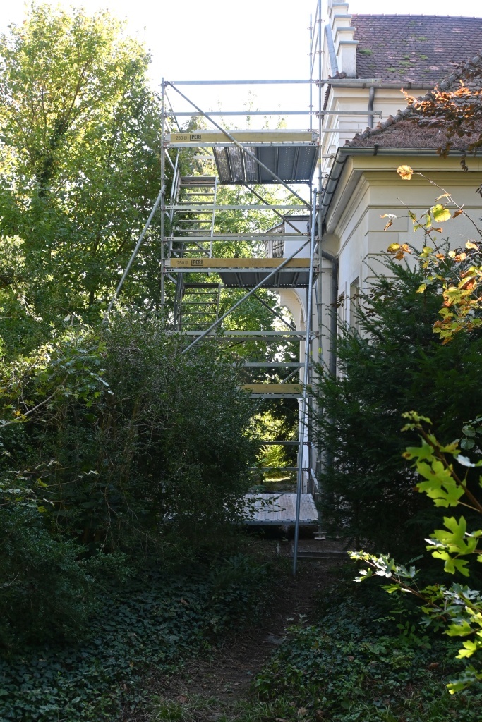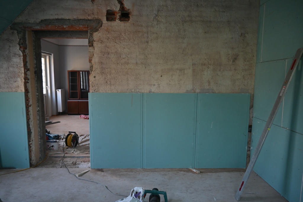 Montag, 07.10.2024 - Ein Gerüst wurde aufgestelt; ist schnell gegangen. Eigentlicher Baubeginn 14.10.2024. Ende des Rohbaus 11.11. Elektroleitungen und Heizungsrohre sind auch verlegt. Seither Ausmalen, Boden legen, Tür einsetzten.