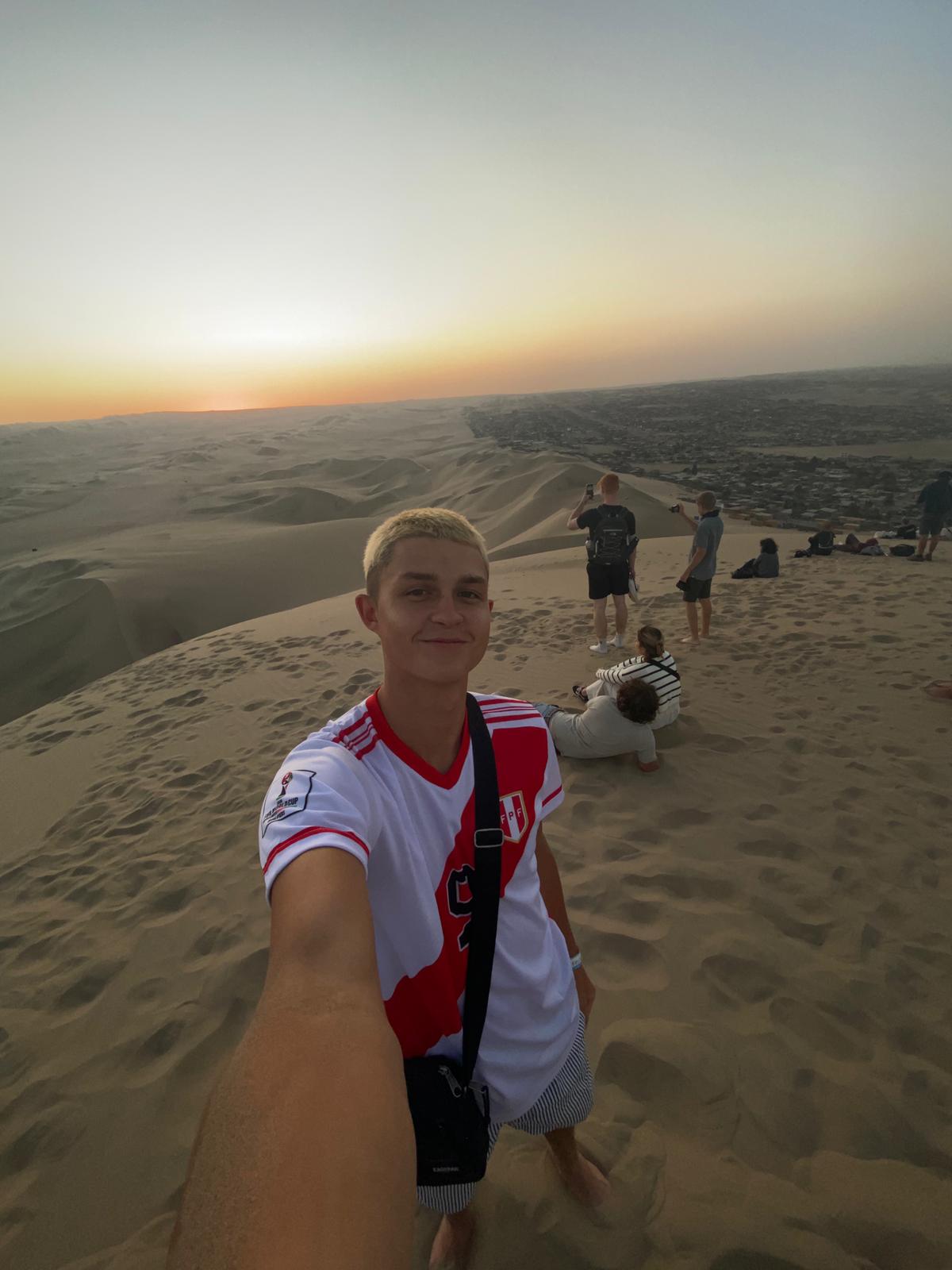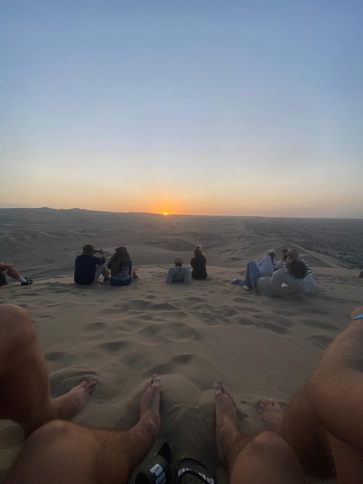Wir waren zwischendurch wieder 2 Tage in Lima und haben dort einen Zwischenstopp gemacht. Waren jetzt eine Nacht in Paracas und sind heute schon nach Huascachina gefahren. Haben uns den Sonnenuntergang in Huascachina auf den Sanduenen angeschaut. Raufgehen war anstrengend, aber hat sich definitiv gelohnt! Auch fuer's Runterlaufen.