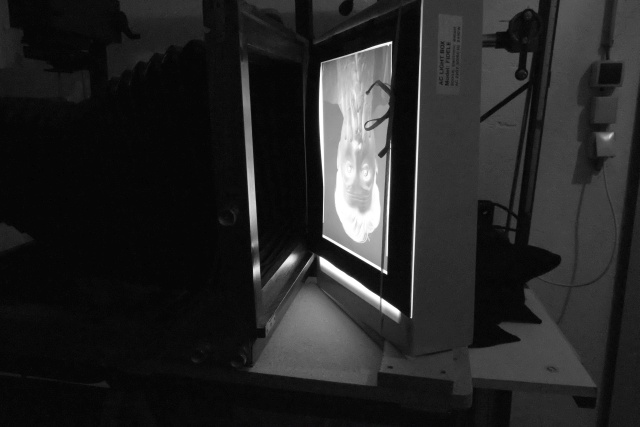 8x10 Zoll Negative mit der "umgedrehten" 8x10 Kamera vergroessern: