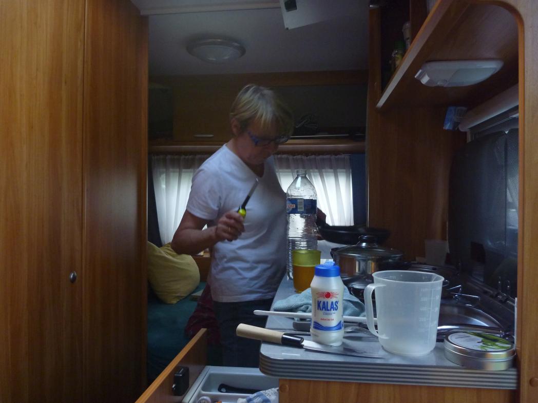 Eine ziemliche Enttäuschung war, dass Wohnwagen nicht wirklich autark sind. Die Klospülung, die nur ein bischen Frischwasser nachpumpt, funktioniert nur mit Strom. An das Wasser im Frischwassertank kommt man ohne Elektrizität nicht ran (allenfalls lässt sich beides mit Brauchwasser in Plastikflaschen oder kleinen Kanistern lösen). (Manche) Kühlschränke, Gasheizung und Herd funktionieren zum Glück auch ohne Strom. Mit Strom funktioniert die Gasheizung allerdings viel besser, weil ein kleinerVentilator die warme Luft im ganzen Wohnwagen verteilt. - Wir hatten Klo und Waschbecken, aber keine Dusche. Wenn es draußen kalt wird und wenn die Duschräume nicht geheizt sind, wäre eine Bord-Dusche angenehm gewesen.