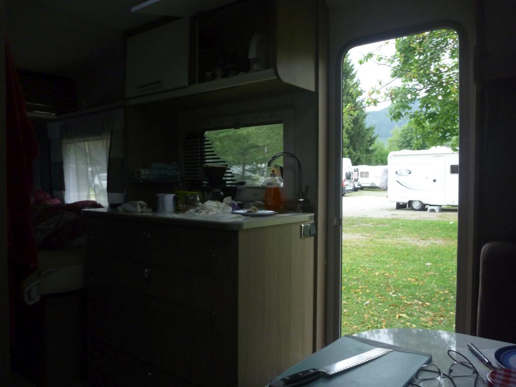 ... mit einem Bürstner Premio 435 TS gemietet von Scheiber / Alland. Hat das mit dem Chalet im Überall funktioniert? Na ja, nicht wirklich. In dem Wohnwagen, den wir hatten, und er war natürlich nicht "unserer", ist es irgendwie nie richtig gemütlich geworden. Das Bad war nur ein Klo mit Waschbecken und selbst wenn es Dusche und Duschvorhang gegeben hätte - wir brauchen eigentlich nicht viel Platz - aber es wäre doch eine Spur zu eng gewesen. Es war sauber und appetitlich, aber so blöd gebaut, dass es keine einzige gerade Abstellfläche gab. Dann waren da die Querbetten - also Querbetten sind jetzt wirklich nix, wenn man sich leicht beengt fühlt. - Und die Campingplätze? "Le Paradis" bei St. Leon Sur Vezere war unübertrefflich schön, aber das ist die Ausnahme. Die Waschräume waren überall auf dieser Reise sauber; die meisten waren allerdings ungeheizt und das war im September manchmal schon zu kalt. Und die Toilette sind alle wie öffentliche WCs gebaut, das heißt Trennwände oben offen . . . bei größerem Andrang . . .