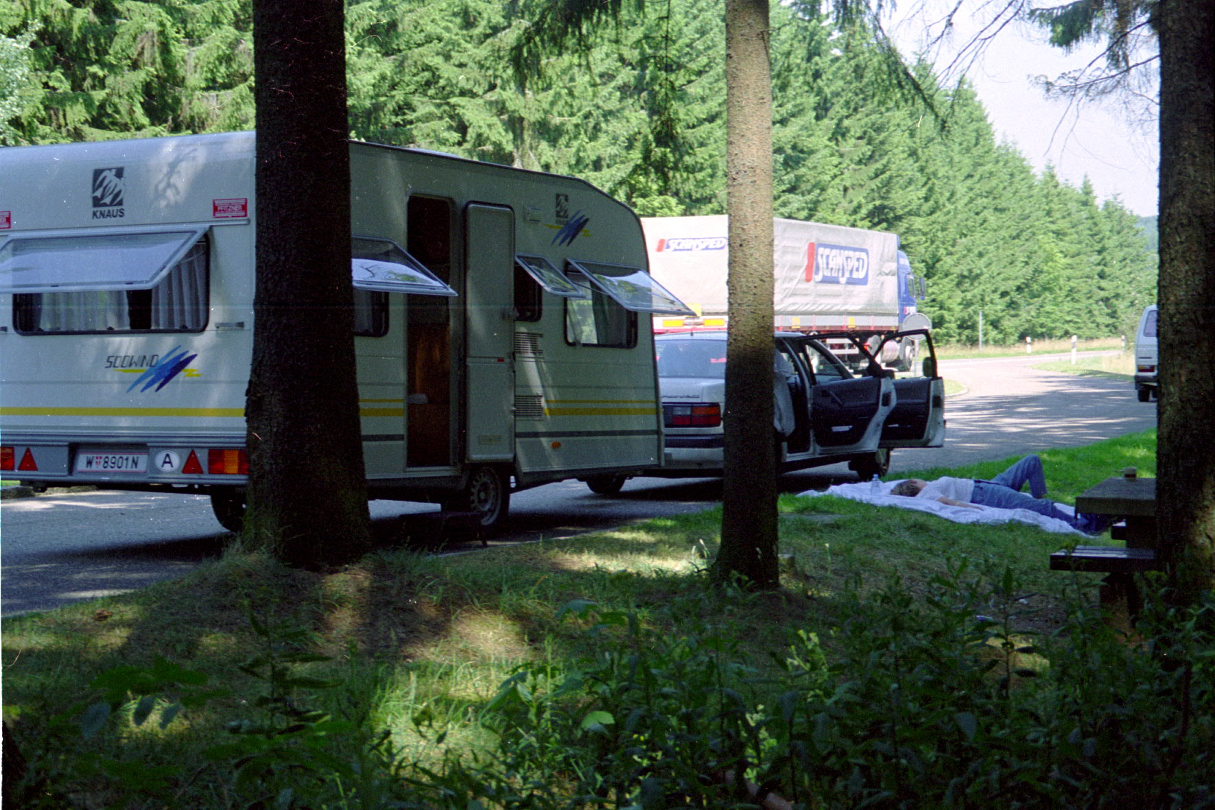 Wir sind schon einmal mit Wohnwagen unterwegs gewesen und zwar 1998 in die Bretagne. Unser damaliges Auto war ein Passat mit nicht sehr viel PS (ich glaube so um die 95) und einem Automatikgetriebe; der Wohnwagen war ein Knaus Südwind 450. Obwohl vorgewarnt, war ich damals schockiert, wie sehr so ein großer Anhänger an dem Auto reißt, wie sehr er sich auch gefühlsmäßig 'anhängt' und - wie erschreckend heiß der Getriebetunnel damals wurde. Die Fahrt hat uns nicht zu einer Wiederholung verlockt.